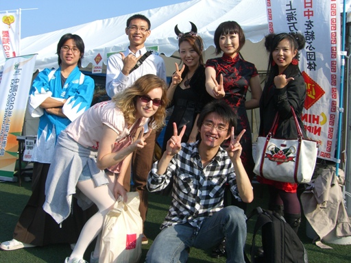 10月31日、万博公園で上海万博応援イベントに参加しました。当日はハロウィンであるため、名大・外国大の学生達と仮装して行きました。
