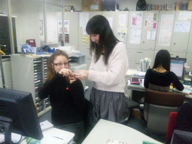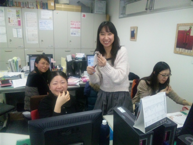 左が今月からI.CNAGOYAの研修生K辺さん。前職がカメラマンだということで留学生のレポート写真はバンバンとってもらってます♪ さすがに美しく撮れてみんな大満足♪(もちろんモデルがいいから?!)