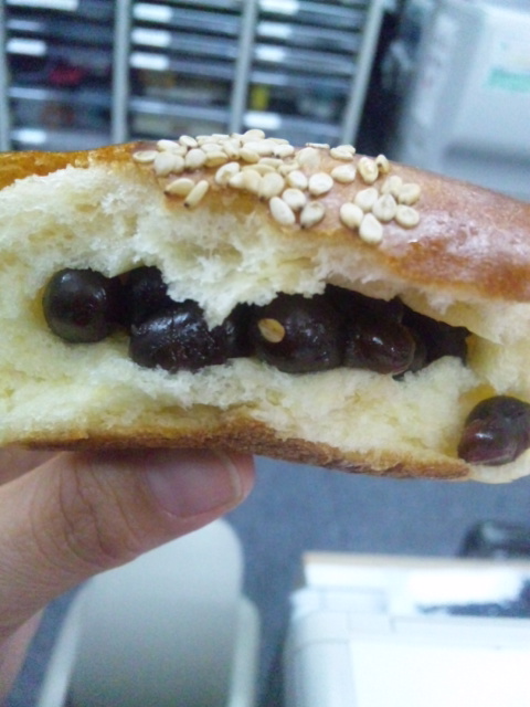 本日のおやつは「あんぱん」でも、このあんぱん「つぶつぶ」なんです。すごいでしょ。