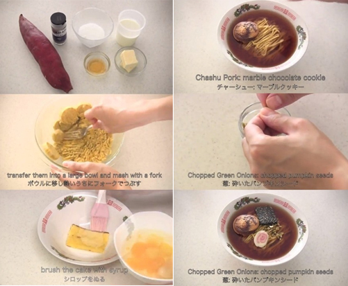 考案された方は日本人ブロガーのochikeron(オチケロン)さん。群馬県高崎市にあるケーキ店『まちのくまさん』にて実際に販売されている “ラーメンケーキ” を新聞で知り、レシピを想像しながら制作してみたんです。まず「作ってみよう!」っていう、その熱意がスゴイですね!!