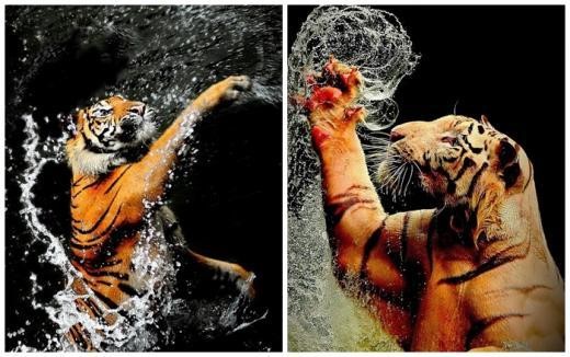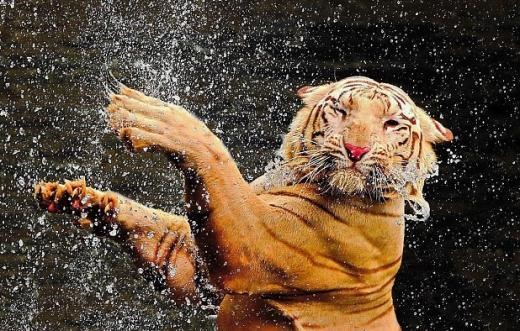 水遊びをするトラの姿がまるで芸術作品のようです!